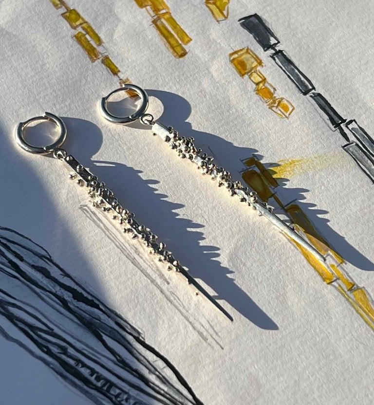 Since then, her craft has been about listening to materials, reading textures, letting them speak. Her journey began with sculpture, and that legacy remains: each jewel is a miniature sculpture meant to coexist with the body, to accompany it, not overpower it.